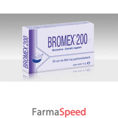 Bromex ”200” è composto da: Bromelina,Pompelmo semi, Boswelia serrata. Vitamina C, Astaxantina, Vitamina B1, Vitamina B6, Vitamina B12, Manganese completano la formulazione. La Bromelina è un enzima proteolitico ricavato dal gambo di Ananas, la Boswelia serrata è un albero della zona magrebina ed indiana dalla cui corteccia si ricavano i principi attivi (acidi boswelici). I semi di Pompelmo (Citrus paradisi) contengono nel loro fitocomplesso, numerose sostanze attive a cui sono attribuite proprietà antimicrobiche. L’infiammazione è un processo dinamico comprendente l’insieme delle modificazioni reattive che compaiono nelle strutture vascolari e connettivali di un distretto organico, per arginare e riparare i danni prodotti da agenti lesivi di diversa natura. Clinicamente, i segni cardine dell'infiammazione sono: arrossamento, tumefazione, calore della parte infiammata, dolore, alterazione funzionale (rubor, tumor, calor, dolor, functio laesa).
