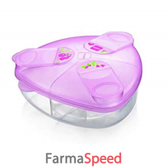 Suddiviso in tre comodi scomparti da 40 g di capacità ciascuno, il porta latte in polvere è leggero e poco ingombrante, tuttavia molto capiente.